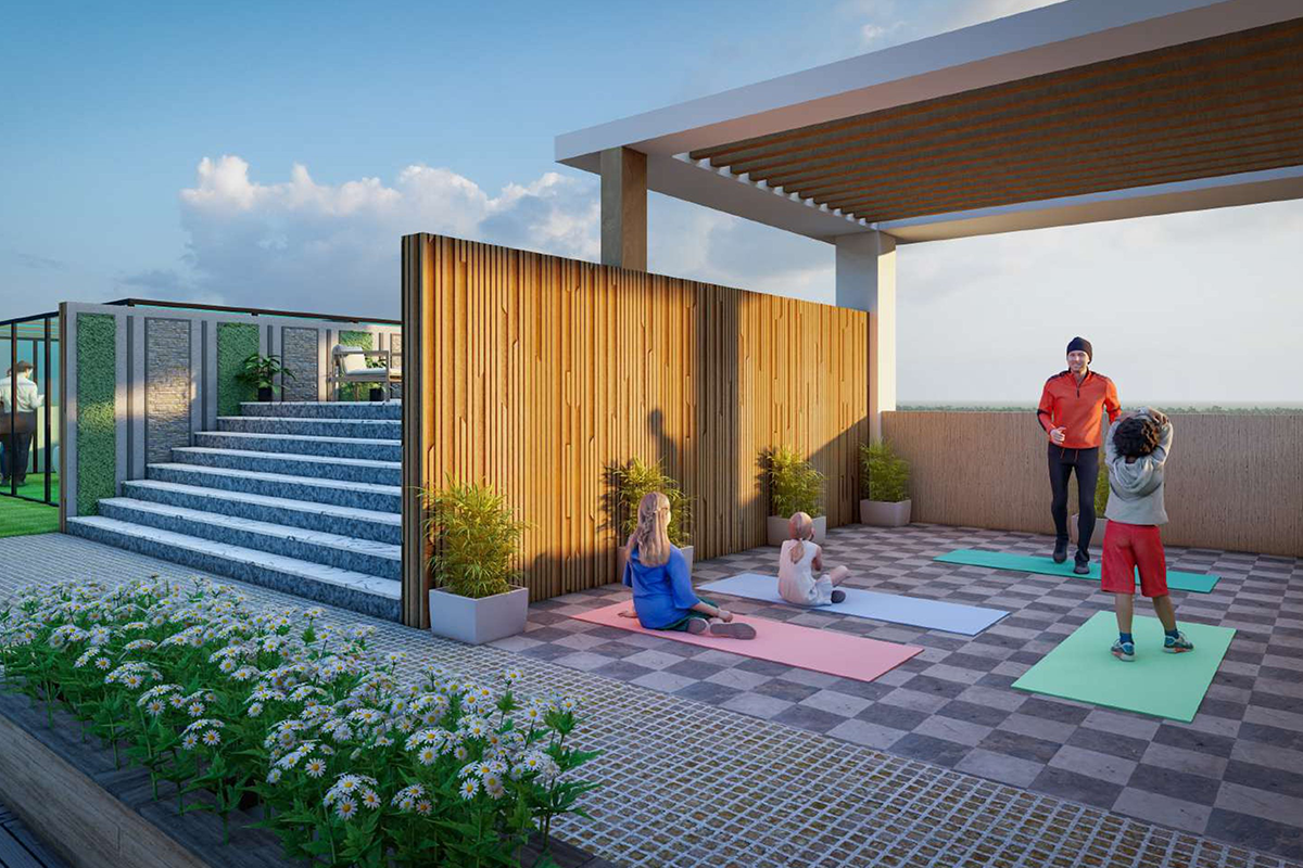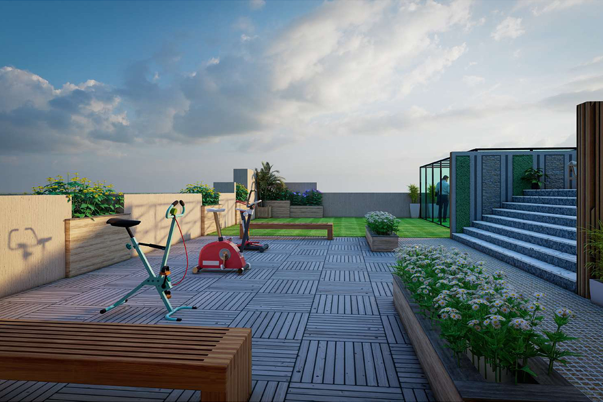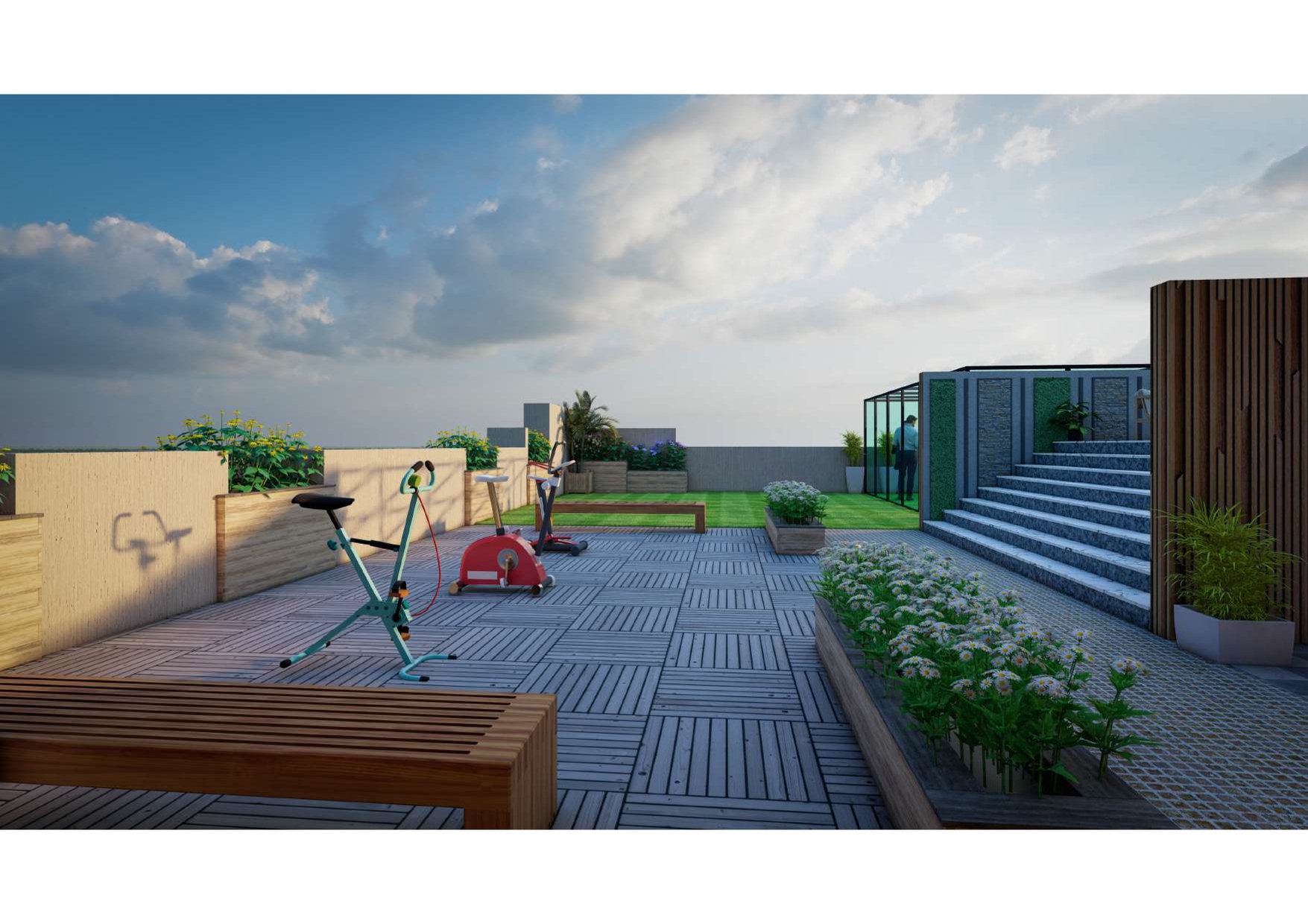 Rooftop Glass House Gym with Yoga Space